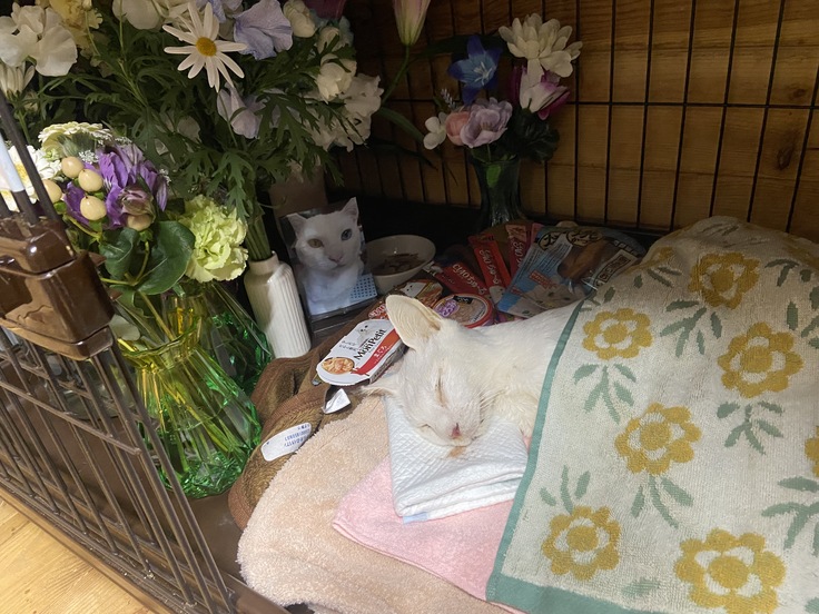 「ハウス」に保護されてる複数の猫さんの中で、常時誰かが体調を崩すので、そのたびにその子等の通院につきそい、常に誰かに薬を飲ませ食事も特別食・・私自身気が遠くなる様な事をボランティアの皆さんが手分けしてこなし・・そして介護も空しく毎年のように誰かが旅立って逝くのです。