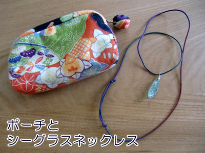 ・この活動を応援してくださっている被災地の方の手作りシーグラスのペンダントと手作りポーチ