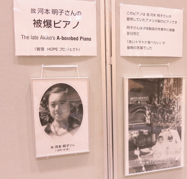 (写真は、今回使わせていただくピアノの持ち主である河本明子さんのものです。私たちと同じくらいの若者が、明子さんと同じように原爆によりたくさん命を失いました。その重みを伝えていければと思います。)