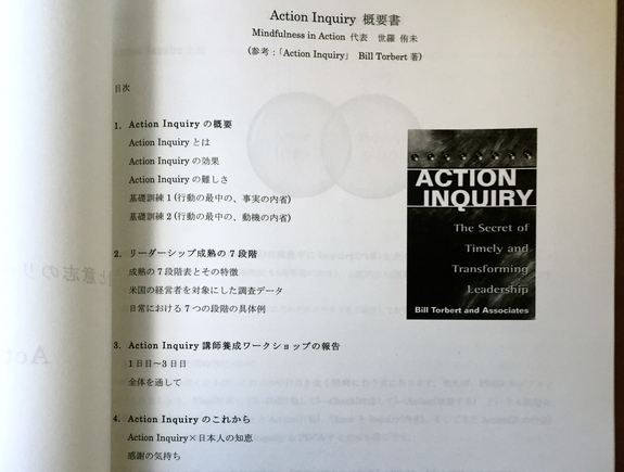 Action Inquiryの概要、(Action Inquiryのレベルに沿った)リーダーシップ成熟の7段階、ボストンでのワークショップの報告、Action Inquiryのこれから(=皆様へのご挨拶)と大きく4つの章に別れております。