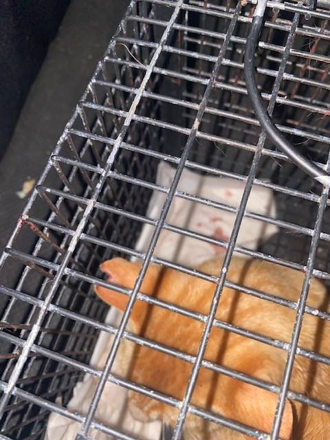 TNRをする予定なので捕獲しようと思い近寄ったらMAU母(そっくりだから母だと思う)足が骨折していたのでメンバーを呼びそのままケージに保護し病院へ連れて行ってもらった。