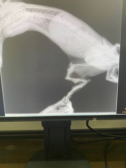 骨折し、変な形で固まってしまい固まった部分の皮膚と皮膚が癒着し化膿していたとのこと・・・・・