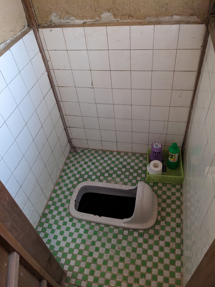 創業90周年の建物の劣化は今は顕著に表れています。特にこの時代に取り残された「ぼっとんトイレ」です。