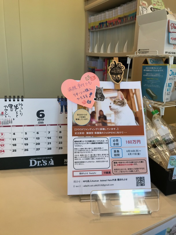 クラウドファンディングを開始して10日が経ちました。ご近所の方、当院の患者様、友人、このプロジェクトに賛同してくれた方達、皆様のご支援、応援のおかげで1/4を達成することができました!ありがとうございます!感謝の気持ちでいっぱいです。