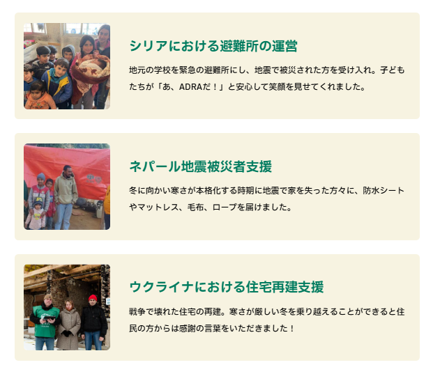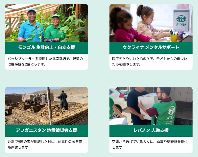 ADRA Japanは、途上国や災害被災地において開発支援や緊急支援活動を行なう国際NGOです。