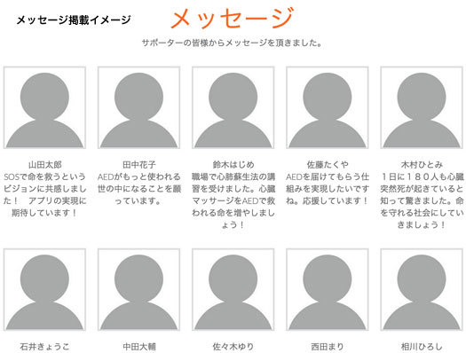 また、1万円以上の支援者の方は、アプリ内のサポーターページにお名前(ニックネーム可)を掲載するのと共に、サイト内にお写真、お名前とメッセージを掲載させて頂きます。