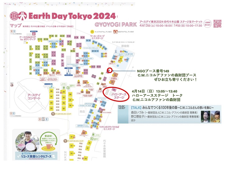C.W.ニコル・アファンの森財団 両日ブース出展(会場の場所案内添付あり)