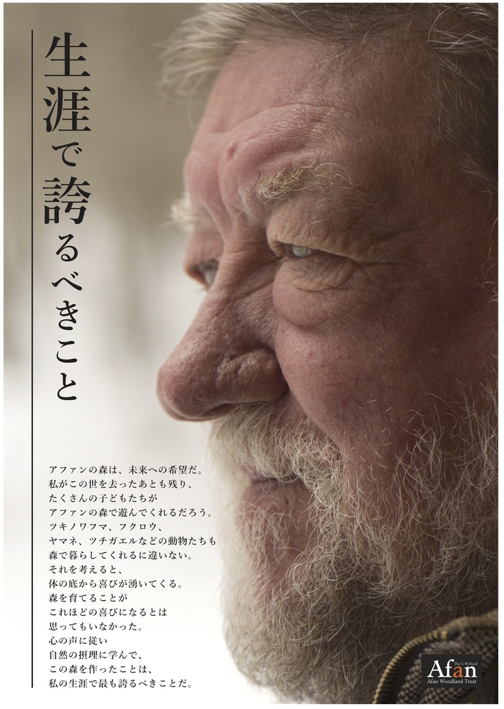 それが、私がひどく傷められたまま放置された森林を買い始め、健全な生物多様性をもつ自然へ回復させようとした理由である。さらにその土地を「C.W.ニコル・アファンの森財団」に寄付し代表になった理由であり、南ウェールズにあるアファン森林公園と私たちの森を“姉妹森”にすることで、日本と生まれ故郷であるウェールズの間に互いを理解するためのいくつもの橋を架けようと務めている理由である。