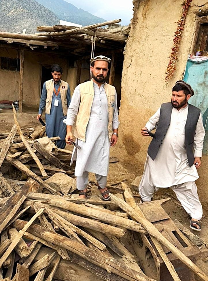 ピースウィンズ・ジャパン アフガニスタン事業の現地事業責任者・山元めぐみからは、「がれきなどのために車でアクセスできない場所も多く、歩いて被災地を回り、情報収集を進めています。」とコメントが届いています。