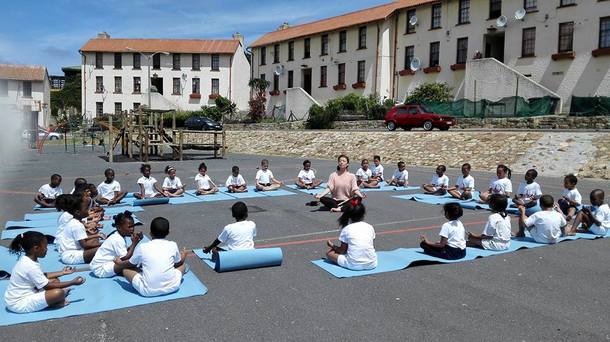当初は20人の子どもたちへのボランティア活動でした。今回は、人口3万人の貧困層地区2ヶ所、ケープタウンのクレインバーグ小学校にて、人口の1%にあたる300人のヨガが10月からスタートします。