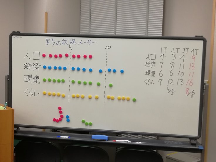 参加者がそれぞれ役割と目標を持ち、限られた資源の中でSDGsに関わるプロジェクトを行い人口、経済、環境、くらしを伸ばしていきます。資源が限られているので参加者同士での交渉と協力が不可欠になっており、プロジェクトによっては人口や環境が悪化したりするので、SDGsについて楽しみながら
