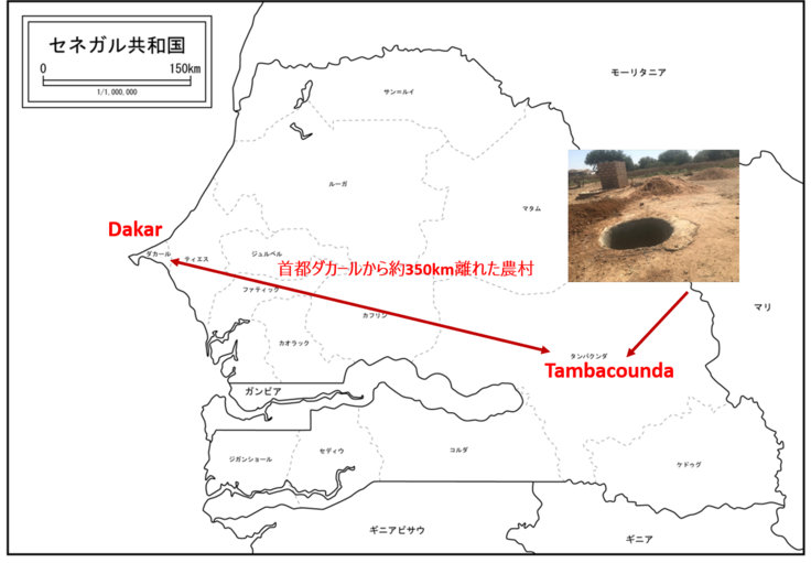 農業の仕組みを整備することで、そこに住む人たちの生活レベルの向上を目指すプロジェクトとして、本事業を立ち上げました。購入した土地は、首都ダカールから約350kmと離れた「タンバクンダ」地域の農村です。タンバクンダはセネガルの南東部に位置し、マリ共和国、ギニア、ギニアビサウとの国境に接しています。