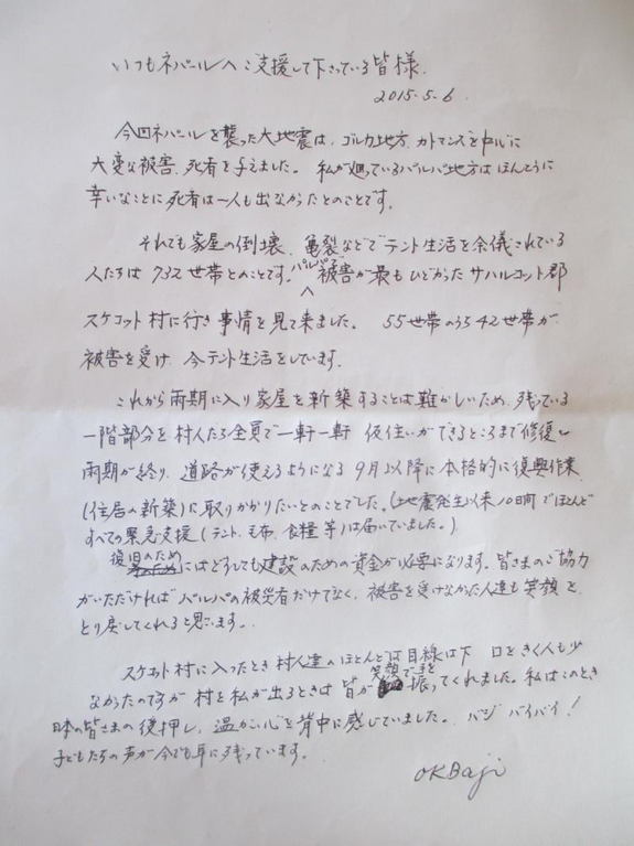 ※2050のネパール大地震への救援活動「マヤ・コ・ビュー」資金援助 http://www.npo2050.org/?p=2666 こちらもよろしかったらぜひご覧ください。