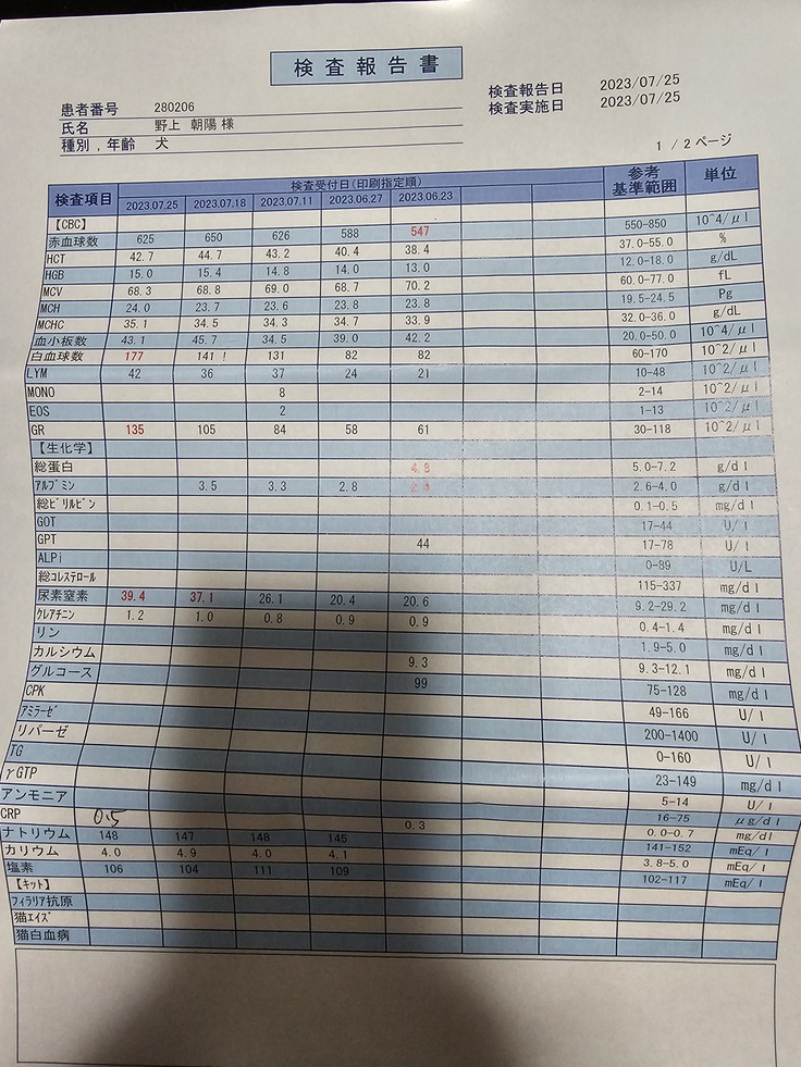 白血球の数値が少し高くなってるので炎症反応の数値CRPも追加で調べて下さり問題ないと判断に。