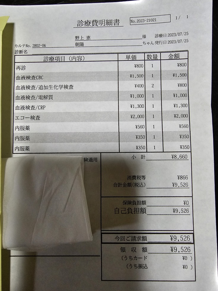 今日の夜に予約していたので病院に連れて行って来ました。