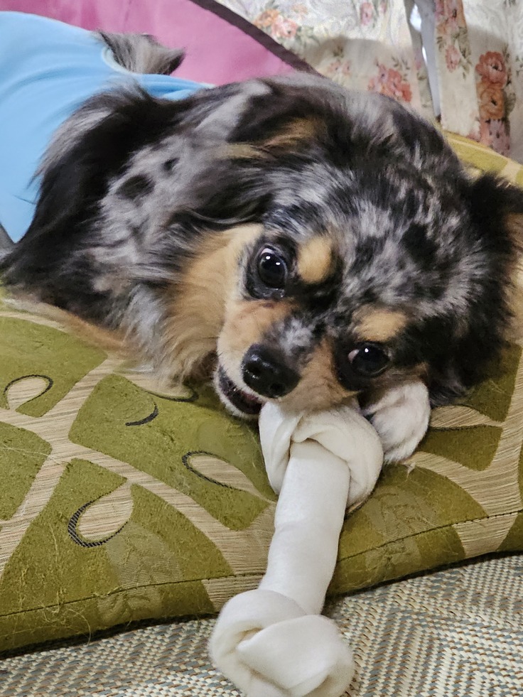 興奮はダメなので、試しにルーク用に朝陽が来る前に購入していたガムをあげてみると喜んで噛んでいました☺️