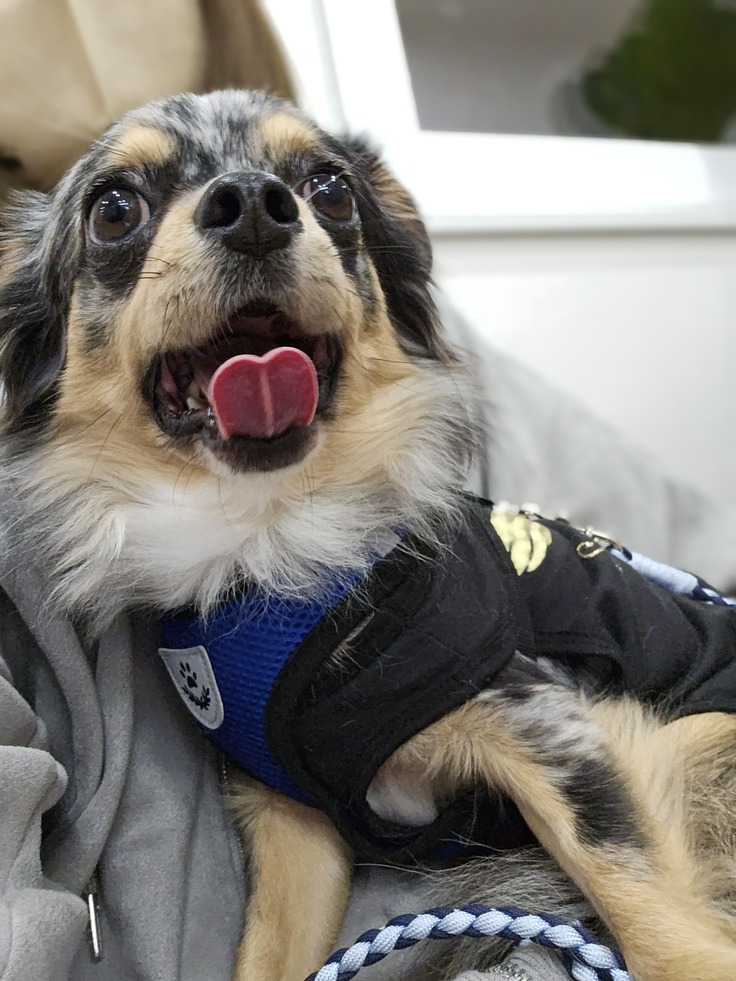 エコーが終わって待合室で結果待ちの時の朝陽です。