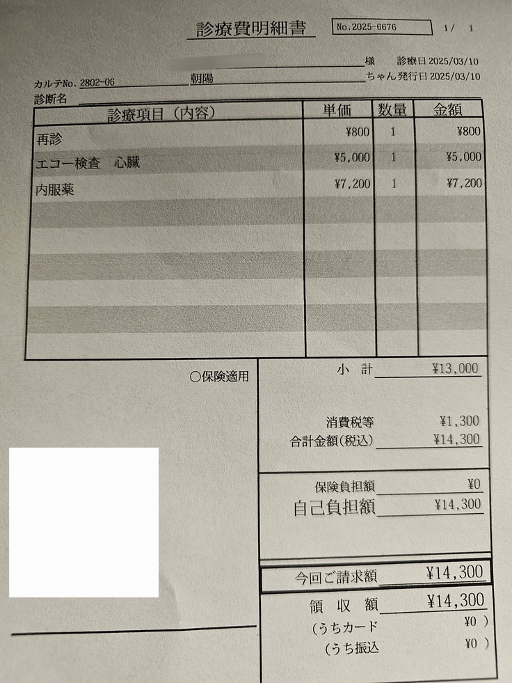 朝陽の治療費をクラファンのご支援の残りから支払わせて頂きました。