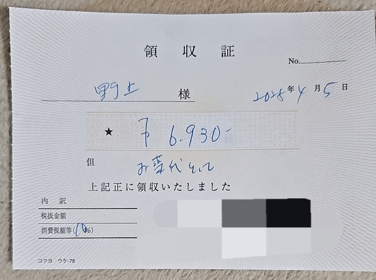 ご支援からお支払いさせて頂きました。