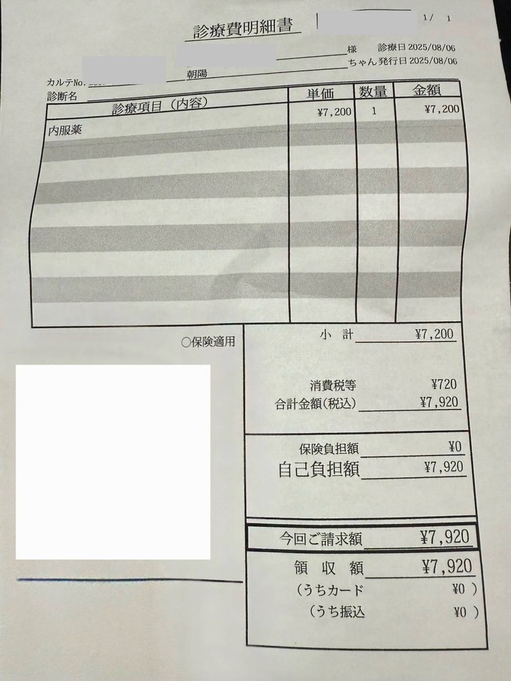今日のお薬の費用をご支援からお支払いさせて頂きました。