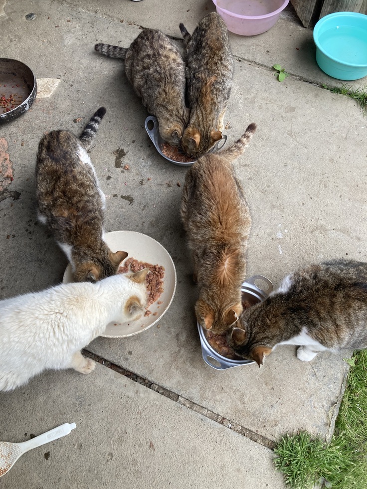 定期的に、皆さまからいただいた支援物資と追加でご飯を買って持って行っていますが、昨日は心配な子がいたので連れて帰りました。