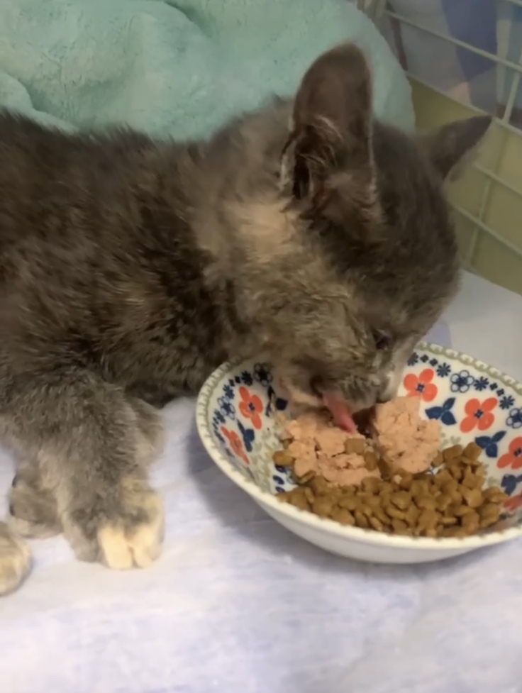 生活保護の方達をサポートしているNPOの方から連絡あり、生活保護の方が3日前にゴミ捨て場で動けなくなっている仔猫を保護していると…