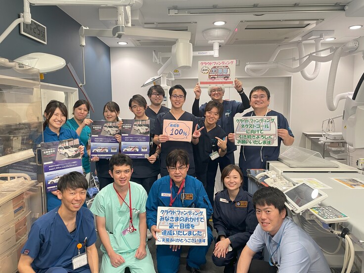 このたびの第一目標の達成で、ドクターカーを更新することができます。「だれひとり取り残さない、全患者救命」をスローガンに、皆さまと私たちの思いを乗せたドクターカーで、地域医療を守る活動を一層強化してまいります。