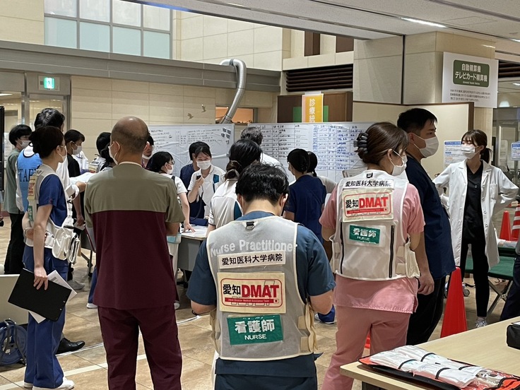 病院災害対策室の立ち上げをはじめ、模擬患者さんのトリアージなど、複数の訓練を行いました。