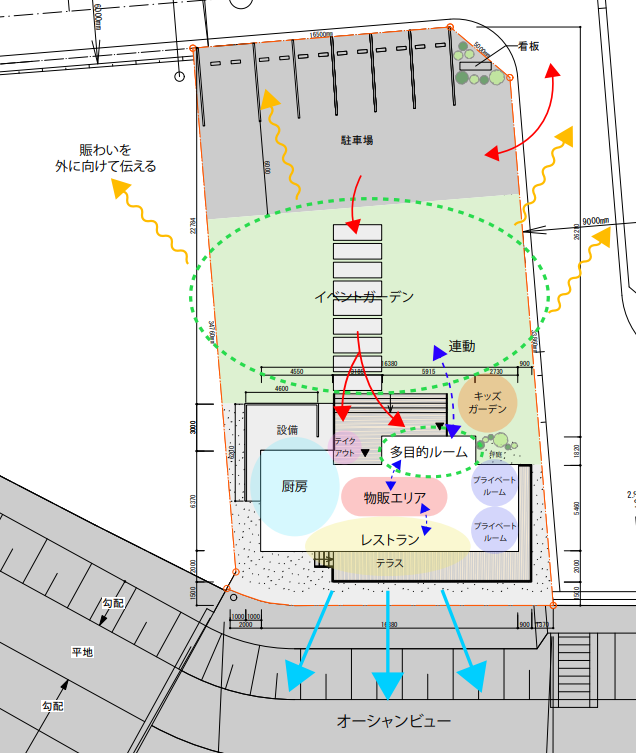 設計士さんや、商工会さんと、事業計画や予算を考慮していくうちに、当初の半分の大きさになってしまいましたが、アンケートも実施しながら、下のような内容に絞りました。