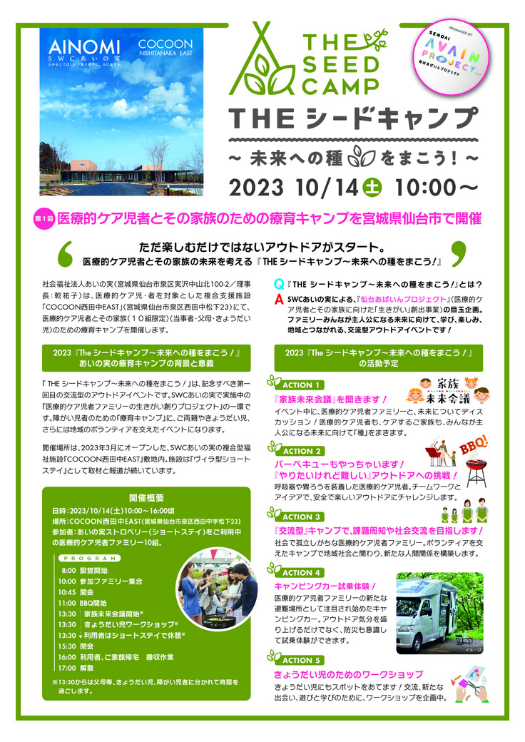 ※シードキャンプにお申込み頂けるのは、あいの実ストロベリー(ショートステイ)をご利用中のファミリーです。