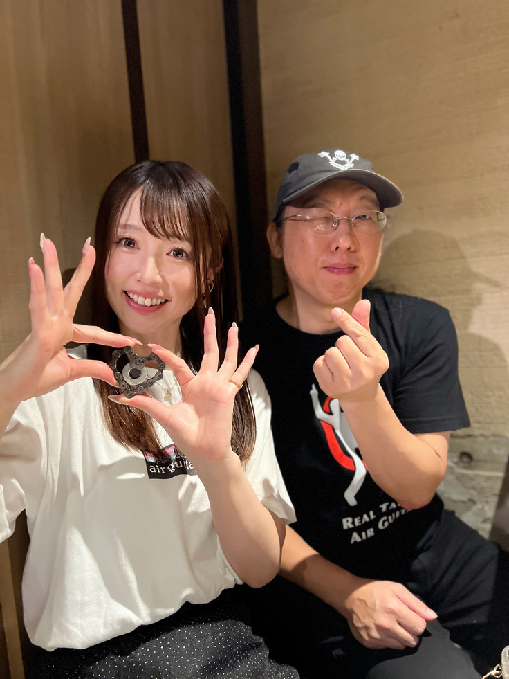 打ち上げにてMCのDaisy×Daisyと台湾エアギター協会から来たIron Ageさん。
