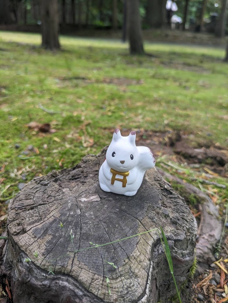 切り株にちょこんと鎮座した姿がかわいくて、でもどこか神々しくもあり…