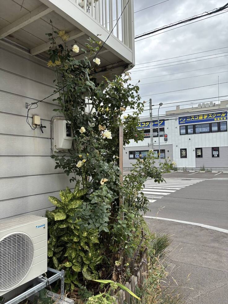 🟡【入り口の雑草と黄色い薔薇】