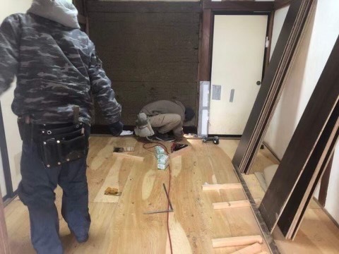 2階トイレからの水漏れにより水浸しになった部屋の床張り作業だけは完了いたしました。