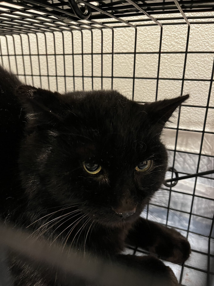 ニューフェイスの黒猫くん。近くに黒猫ばかりを保護した現場があるので、そこから来たのかな…⁉︎