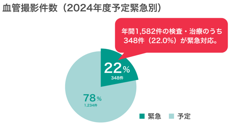 命や後遺症に関わる⾎管撮影の治療と検査は、年間1,500件を超えていますが、2026年3⽉で、そのうちの1室の機器が保守期間を終了します。
