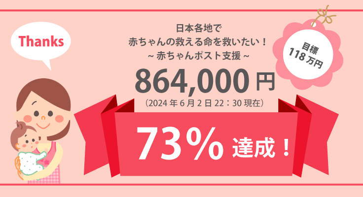 皆さまからの温かなご支援のおかげで、目標金額の73%である864,000円に到達いたしました!(目標金額118万円)