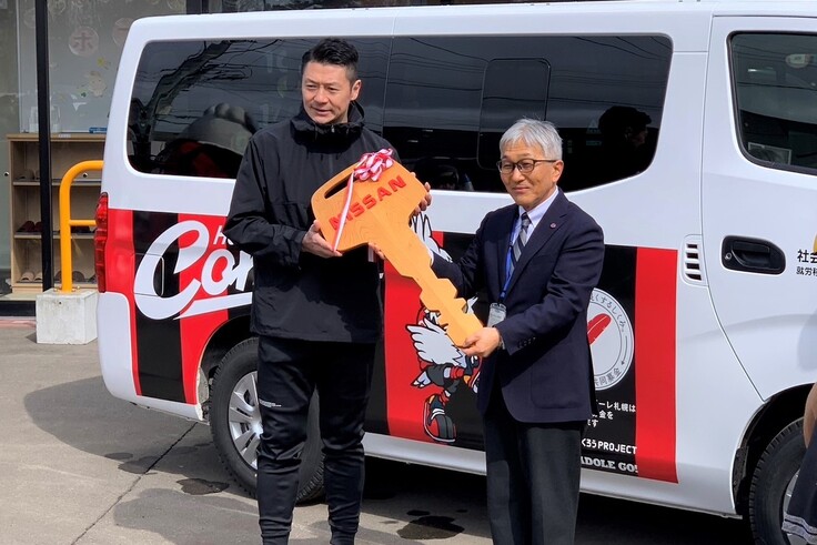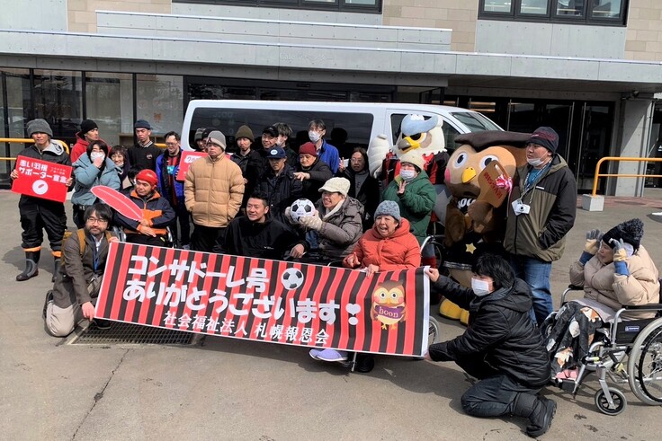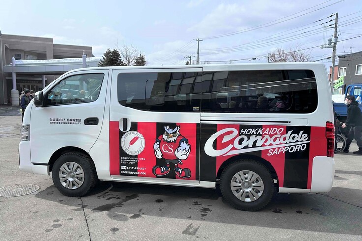 本プロジェクトによる支援金及び、北海道コンサドーレ札幌選手会様より寄せられた2022シーズンに積みかさねた勝点募金・ゴール募金(リーグ戦での勝点1につき3,000円、1ゴールにつき3,000円の募金)により、第14号となるコンサドーレ号が札幌市厚別区の社会福祉法人札幌報恩会 就労移行支援・就労継続支援B型 ホープス様に贈呈されました。