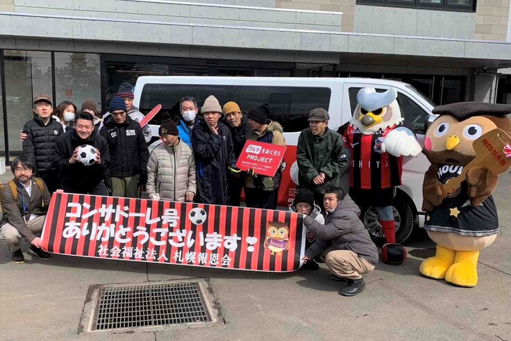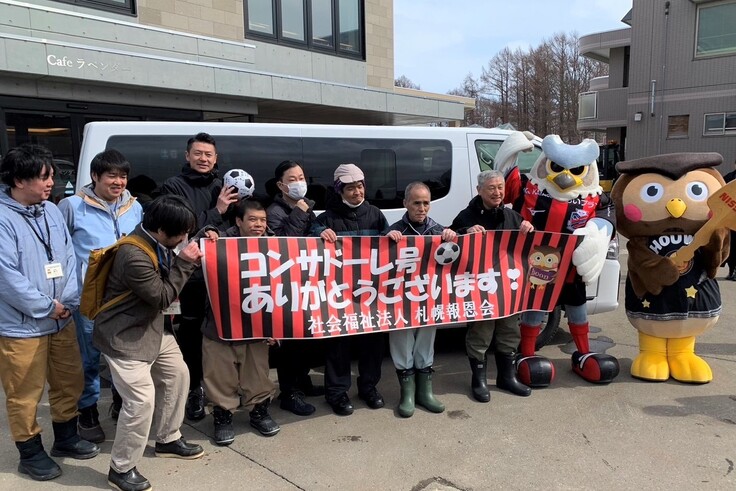 北海道の福祉施設に車両を贈りたいという皆様のやさしい想いによって、今年度も14台目の「コンサドーレ号」を贈ることができました。