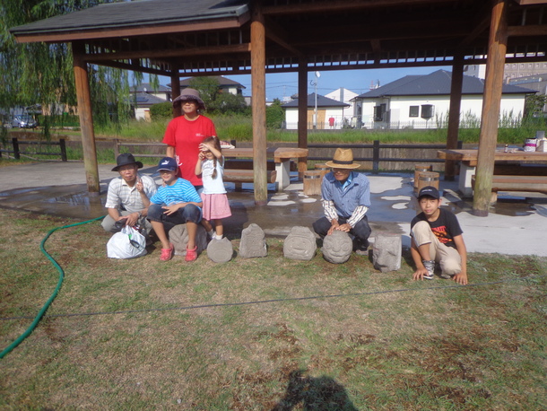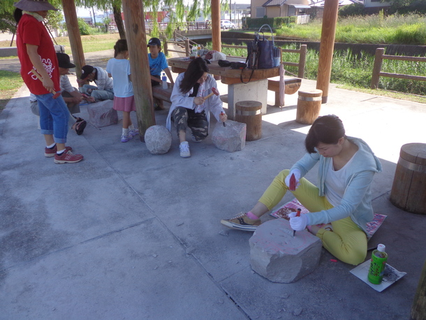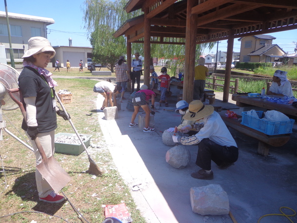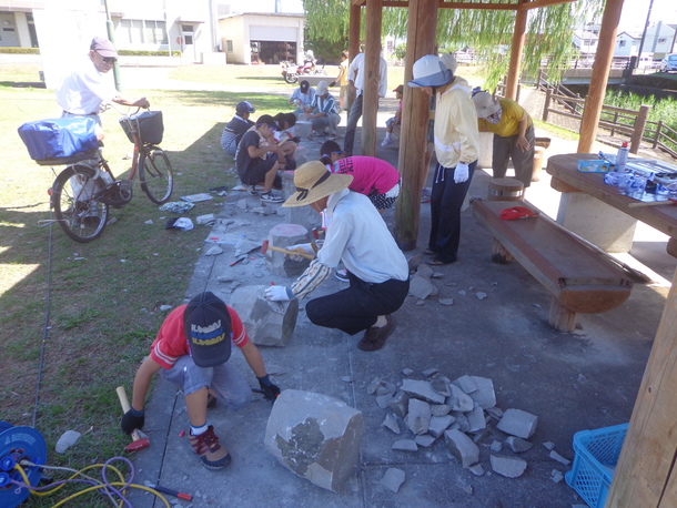 2013年のあかりオブジェ公開制作期間中に、町民の皆さんへ彫刻に親しんでいただくために2日間の石彫教室を開催しました。