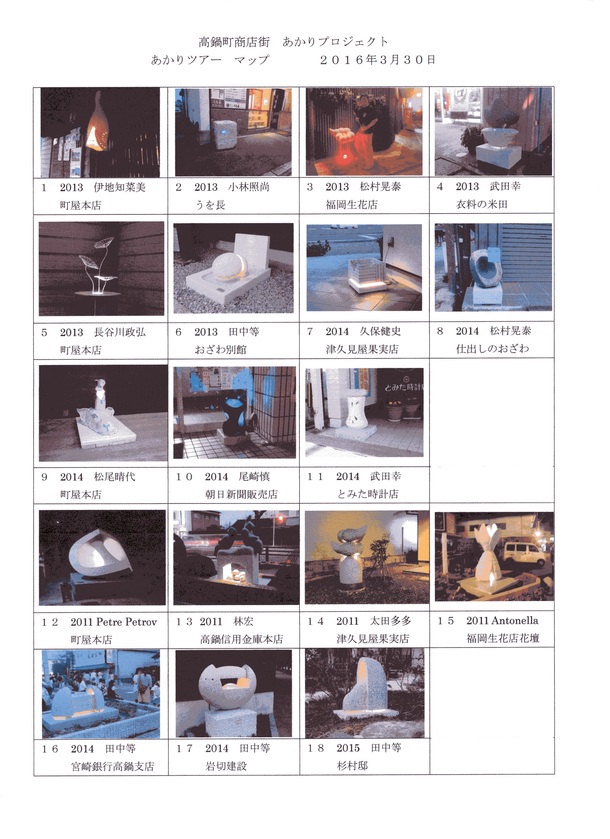それで、あかりプロジェクトで制作されたあかりの一覧を作成してみました。