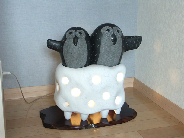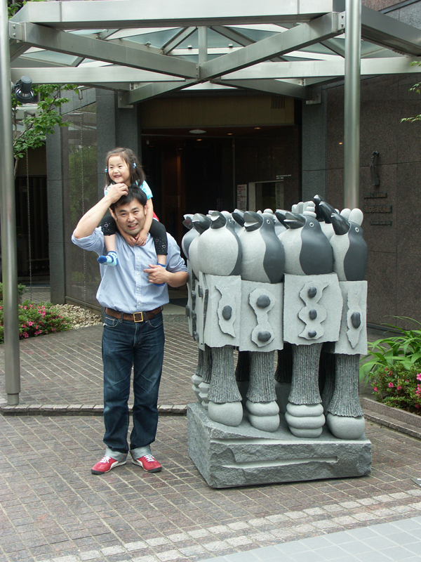 明田氏は、鳥や動物を擬人化した彫刻表現で、近年は画廊から個展開催要望のオファーがひっきりなしで、超多忙を極める売れっ子作家です。