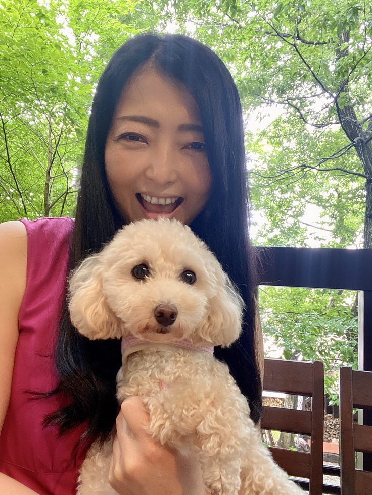 【赤坂サカスいぬねこ里親会実行委員会 代表 大川篤子(活動名は大川あつ子)と娘、元保護犬のミラちゃん】