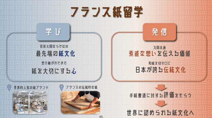 これらを詰め込んだのが、「今」だからこそ成し遂げたい私の挑戦である「フランス”紙”留学」です。