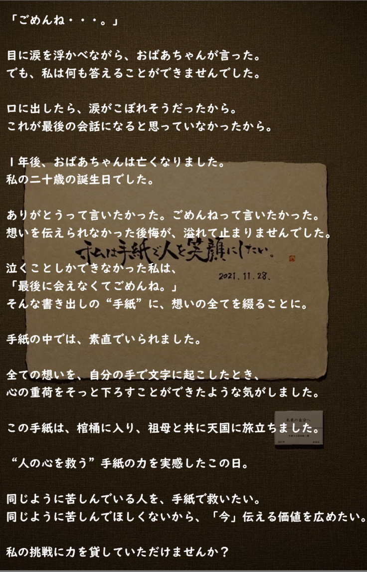 祖母の死をきっかけに「手書きの手紙を広める」ことを決めました。