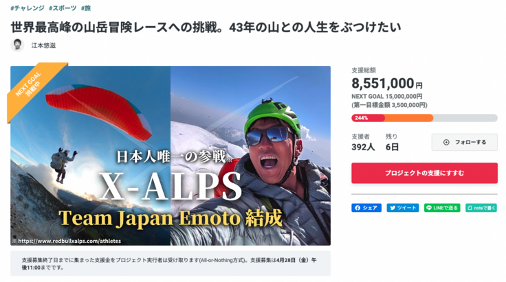 戦友 江本悠滋くんのX-Alps挑戦に、みんなの後押しを!