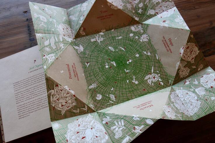線、丸、三角の構成や精霊、人などの形はそれぞれに意味があるそう。