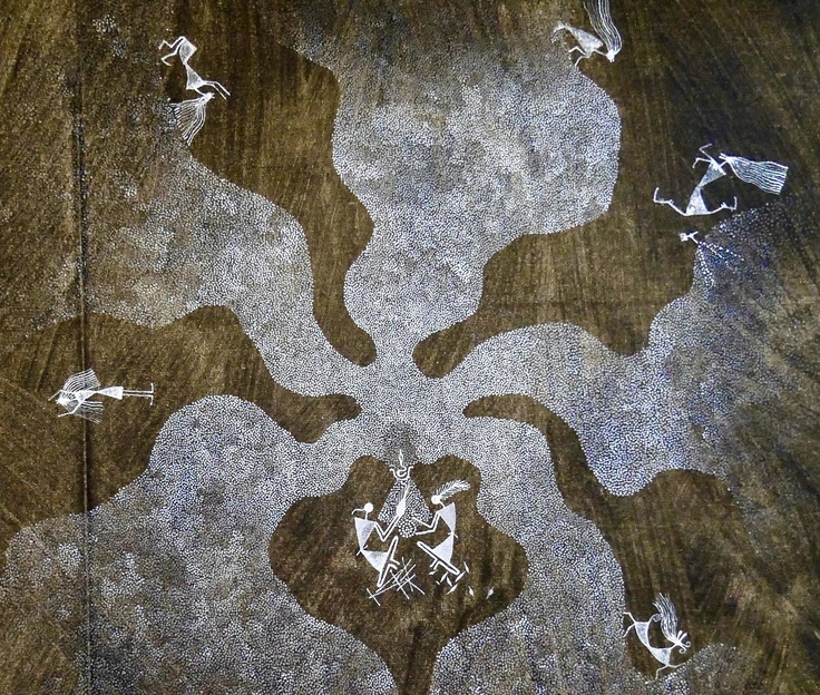 ワルリ画とは、インド西部 マハーラーシュトラ州の先住民族 ワルリ族に古来より伝わる描画ルールに則って描かれる絵。