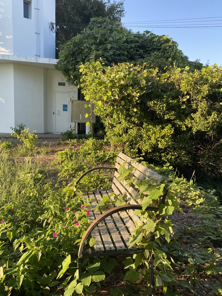 でも、手すりのアールがかわいいベンチ。灯台ともしっくりくると思いません?