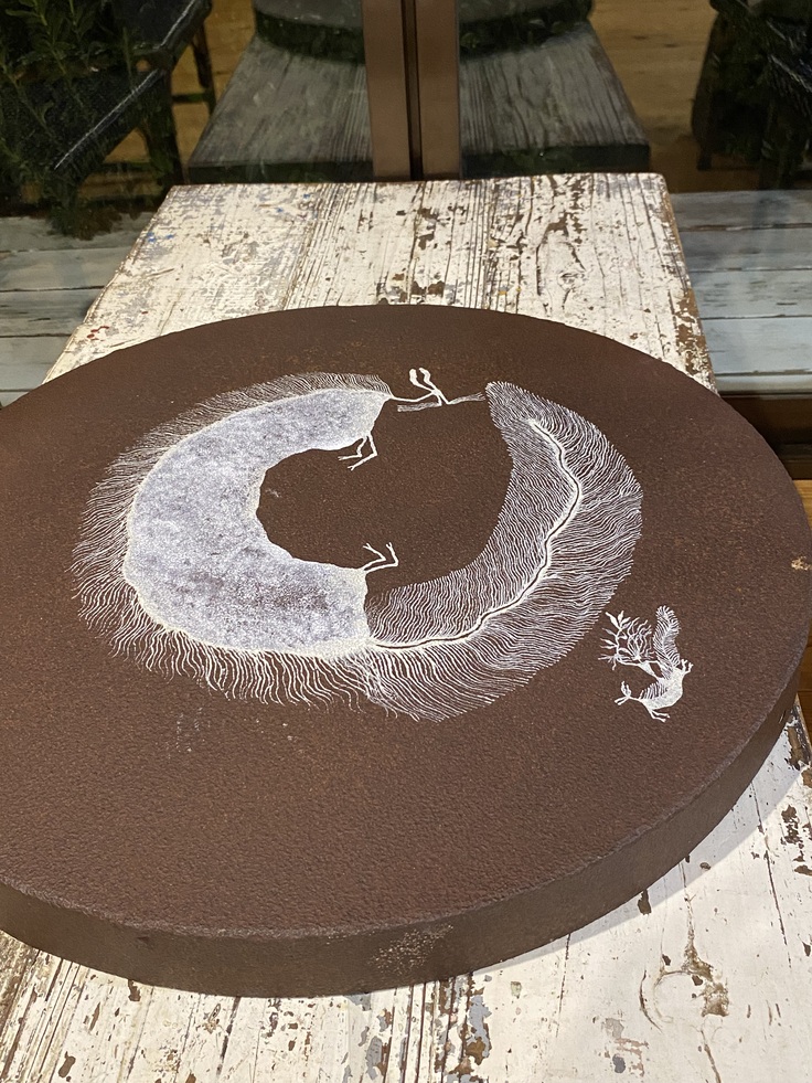 生命を運ぶ船を象徴した作品。設置場所は、伊和都比売神社境内のアマミテラスさんの前。